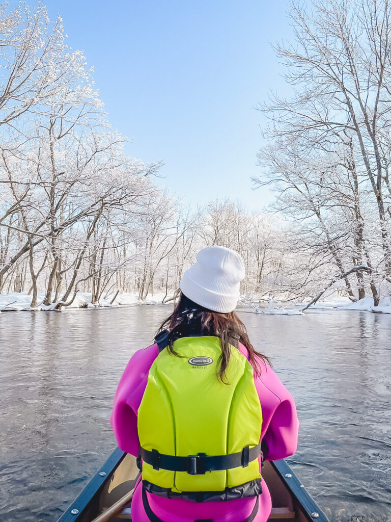 翌朝、釧路川源流で冬のカヌーツアー体験