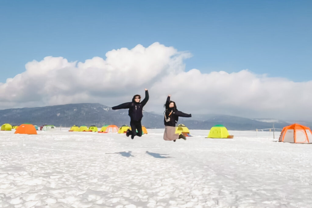 ワカサギ釣りや、スノーモービル等のアクティビティがあります。