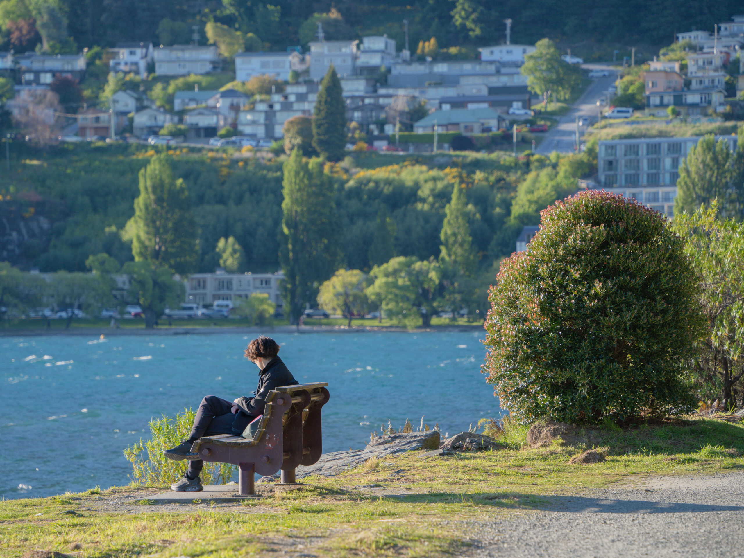 クイーンズタウンに戻った夕暮れ時は、ワカティプ湖畔の散歩がおすすめです。写真は19:00くらい。