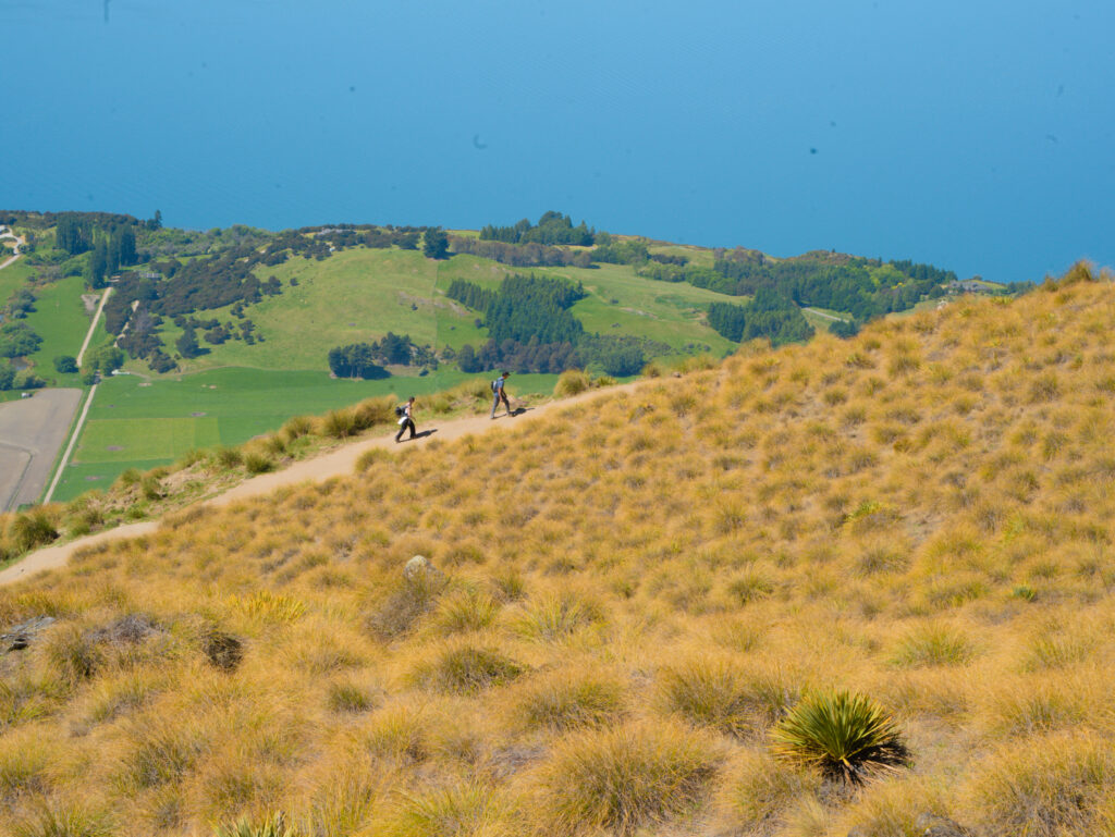 それでも、振り返るたびに広がるワナカ湖の蒼さと、タソックに覆われた丘陵の黄金色とのコントラストの景色が背中を押してくれます。