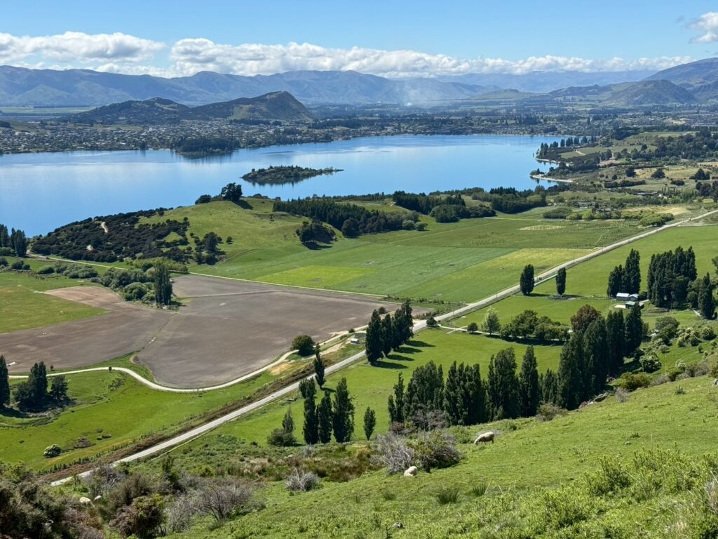 テカポからワナカまでは、車でおよそ2時間半前後の道のりで、曲がりくねった峠道を抜けた先に、次の目的地ワナカが姿を現しました。